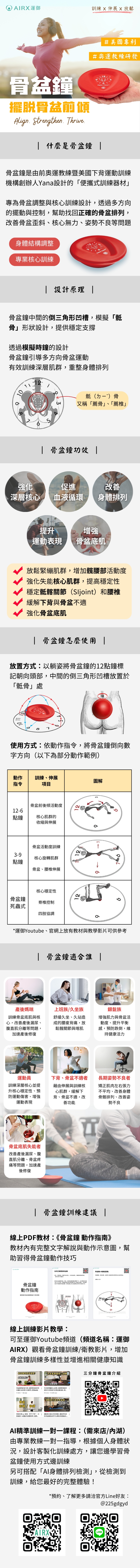 您好,本產品與訓練設計皆基於科學原則與臨床實務經驗開發,已有多位使用者獲得正向回饋。 搭配骨盆鐘、專業課程與AI檢測的整合式訓練,讓您了解自身身體排列狀況、提升身體排列精準度與核心控制。