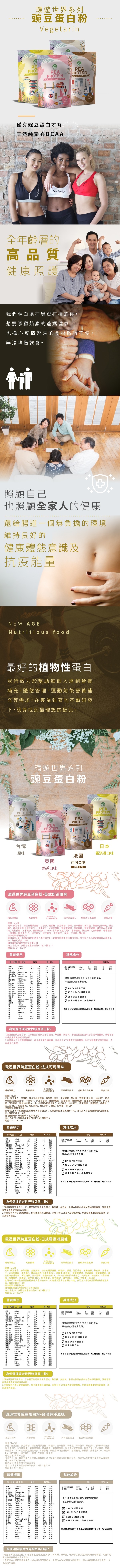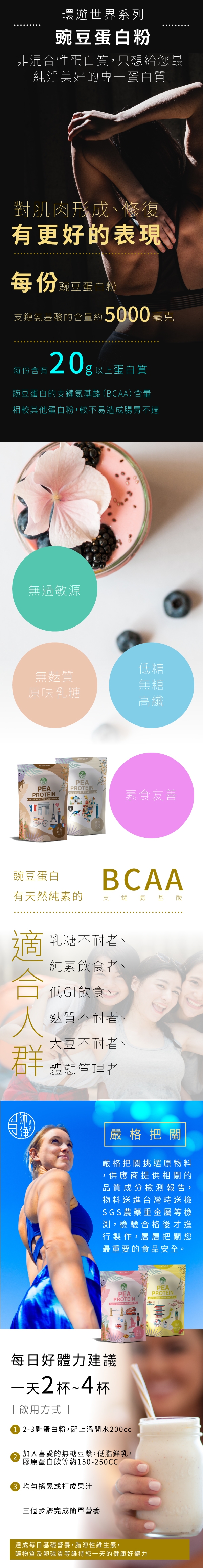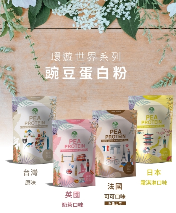 環遊世界豌豆蛋白粉-無糖,素食可食,防脹氣的豌豆蛋白粉,台灣品牌! 台灣製造! 一生懸命專利複方益生菌: 文獻證明增加運動機能,配合運動健身食用易維持體態的專利益生菌! 台灣品牌! 台灣製造! 為何選擇環遊世界豌豆蛋白粉? 環遊世界豌豆蛋白粉,以豌豆蛋白製成,非混合性蛋白,乳糖不耐者或是腸胃敏感者皆可食用,完整提供人體所需蛋白質。優質豌豆蛋白,對於減糖攝取或是茹素者,均為最佳的選擇。 我們的豌豆蛋白粉各口味以國家命名,其中純淨原味為環遊世界豌豆蛋白粉的代表作,因為它是全產品中唯一完全無額外添加糖! 以"台灣"為名。代表著純淨、根本所在。 環遊世界豌豆蛋白粉特徵 1. 無乳糖、無麩質、無混合蛋白提供給您純淨營養素,純淨原味無添加甜味劑。 2. 非基因改造、素食友善、每份含21公克以上的蛋白質、提供完整人體所需蛋白質、乳糖不耐與腸胃敏感者皆可食用、提供必需與非必需胺基酸、無糖或低糖、低碳水、每份含5000毫克支鏈胺基酸。 3. 除了純淨原味(無糖)之外,另提供其他3種口味(奶茶、巧克力、日式香草冰淇淋),同樣具有足夠每日所需蛋白質,提供您更多樣口味選擇,滿足味蕾需求。 一生最好的禮物: 一生懸命專利複方益生菌 一生懸命專利複方益生菌,包含LP28與TWK10專利益生菌,可激發潛力、增加運動機能! 減緩運動後的疲勞,配合運動健身,更容易維持體態! 產品以 "一生懸命"為名,代表研發者對於這支產品的投注心血,具有識別性的精美和風包裝,讓您自用或是送禮都適合! 以上產品由沐淨科技體雕中心創辦人,具有藥師資格與糖尿病衛教師的黃泳霏(Irene)配比研發,真正台灣品牌! 沐淨科技體雕中心官網: https://www.mujing-med.com/ FB粉絲團: https://www.facebook.com/MUJINGMED IG: https://www.instagram.com/mujing.med/