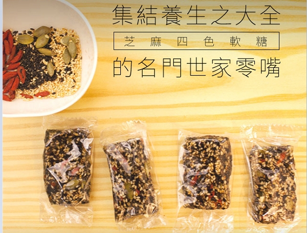 「手工芝麻四色軟糖」集結養生之大全的名門世家零嘴 以黑芝麻為基底,佐以白芝麻、南瓜子、枸杞等堅果讓您在享受美味幸福的同時,同時滋養疲憊的身心。 3瓶一組(含運費)!!每瓶210元
