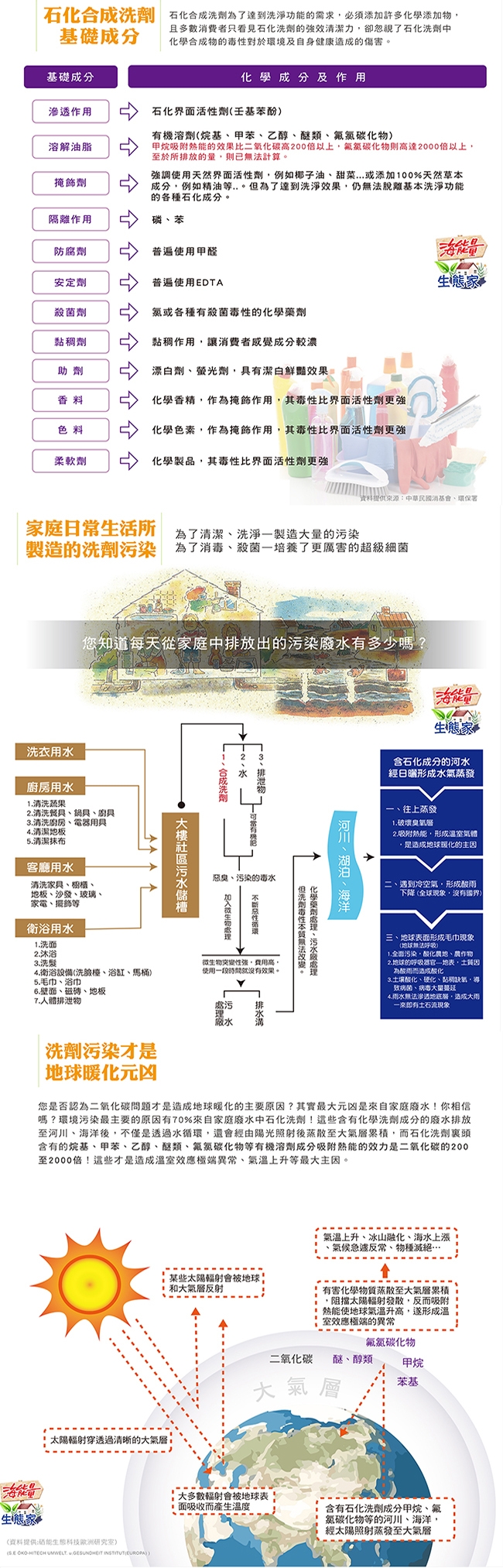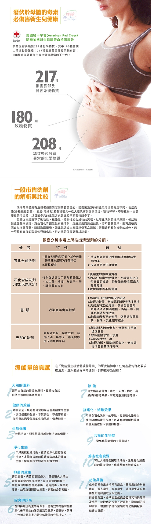 30年來不斷創新,生產出內容物全成分100%純天然,產品不含任何人工合成石化原料(包括:界面活性劑、有機溶劑、化學香精、磷、苯、甲醛、EDTA、殺菌劑、黏稠劑、螢光劑、漂白劑、柔軟劑、色素等),您全家人均可以安心使用。