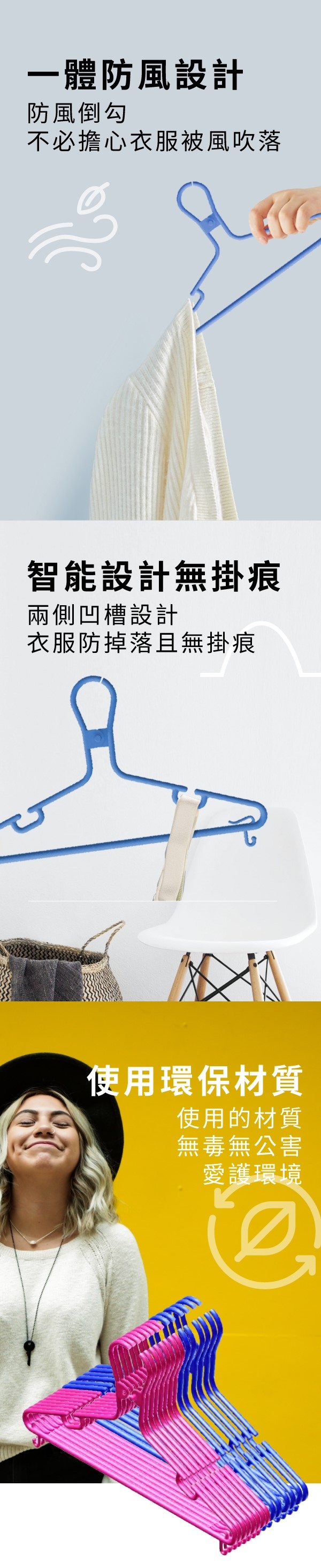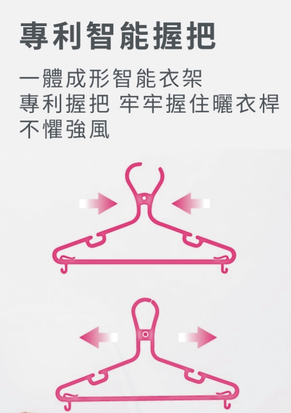 一體成型環保衣架 ※一體性防風設計 ※衣物收納最整齊