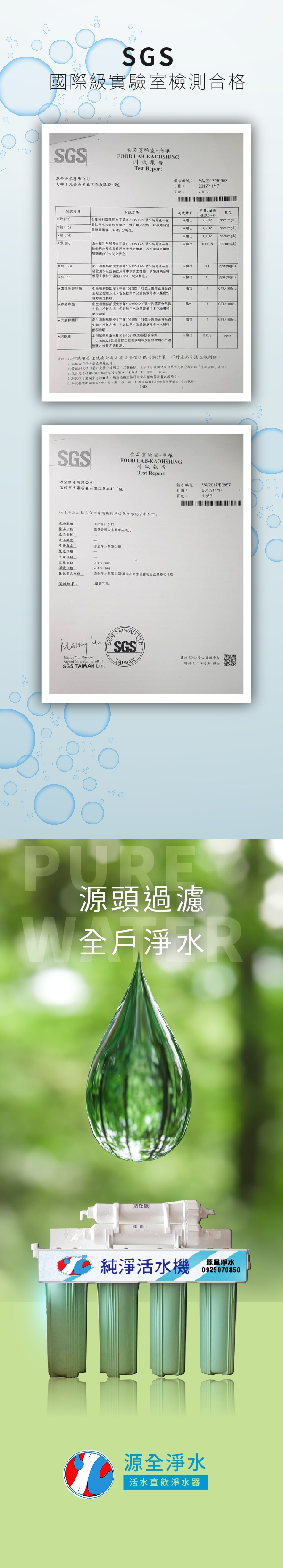 我們有經sgs檢驗報告符合政府法規飲用水標準喔!