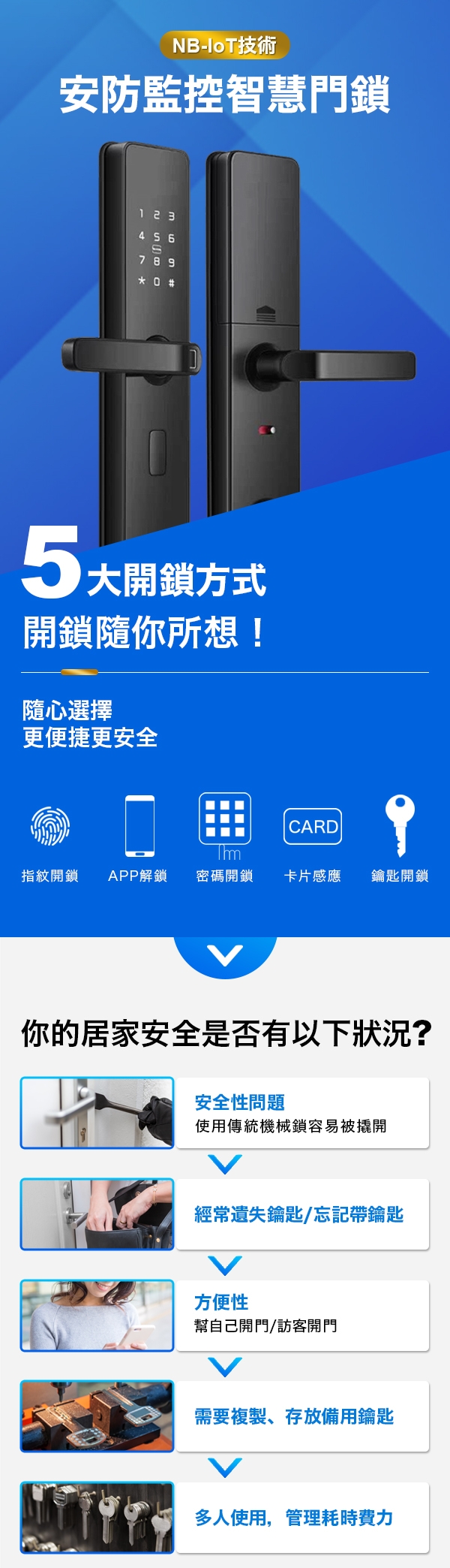 半機械式鎖體,這樣避免當電池沒電時,可用鑰匙開門