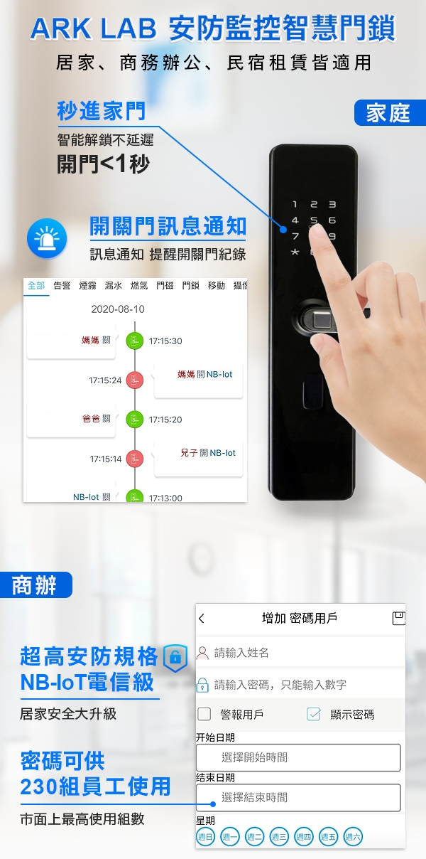 如果是一般的密碼設定,可以運用APP遠端修改和刪除,也能設定時效性密碼給熟人用,當時間過期後就會失效 如果是一次性密碼,我們是採隨機編碼,發放到指定人手機
