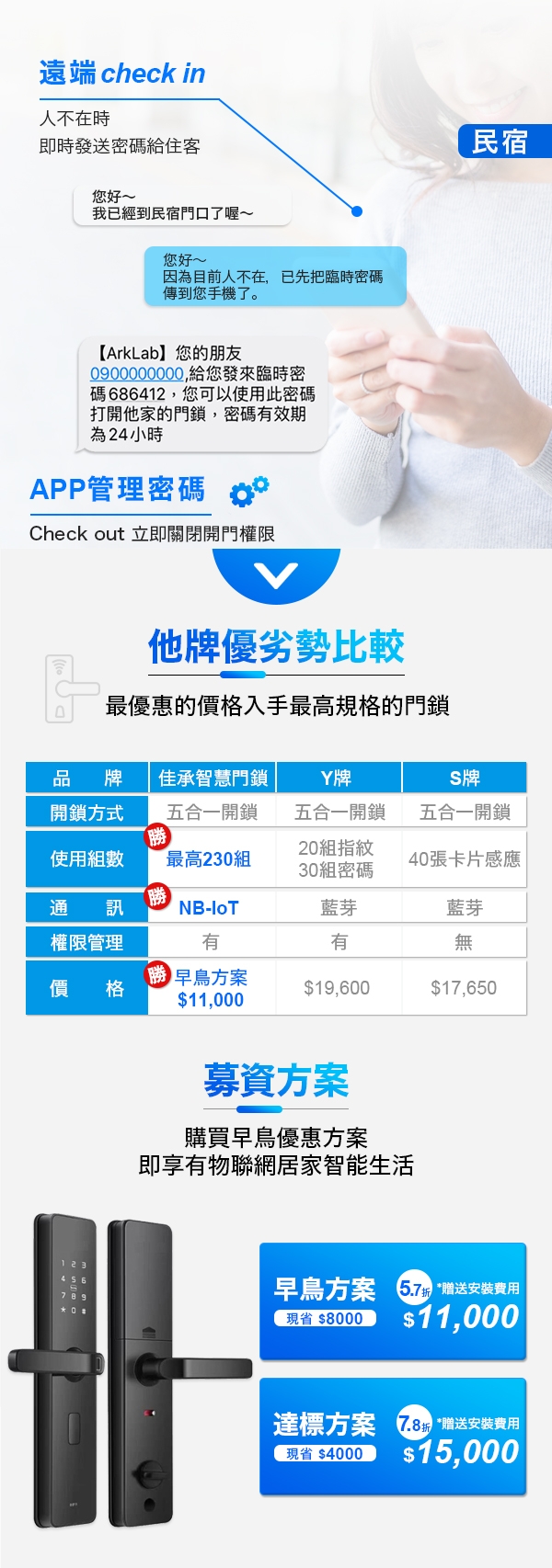 募資達標中盤商優惠:門鎖50組,不含安裝