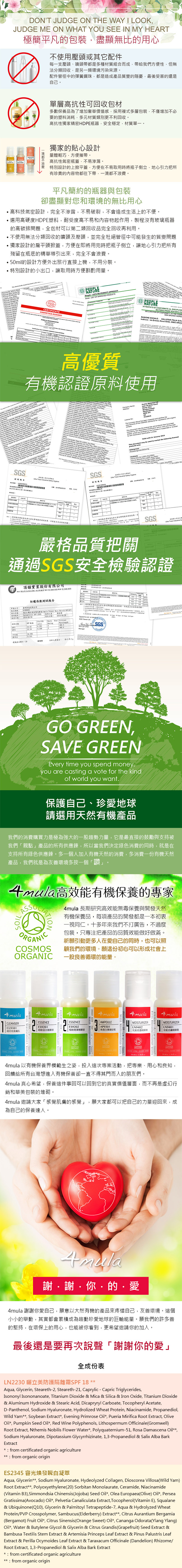 「曬立美防護隔離霜50ml+容光煥發瞬白凝萃50ml」1組 這個系列所使用的包材,看似平凡近於廉價,其實是精心挑選,無比用心。高科技氣密,完全不滲露。 選用高硬度HDPE塑料,製作時沒有玻璃瓶器的高碳排問題,而且可以以第二類回收品完全回收再利用。 沒有任何壓噴頭設計,不會造成份類回收的問題。獨家設計的扁平頭掀蓋,方便把瓶子倒立,讓地心引力把所有殘留在瓶底的精華完全給倒出來,不會浪費。