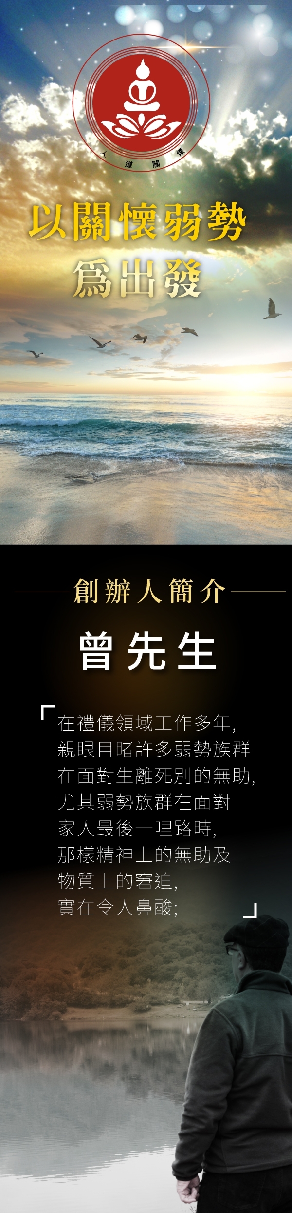 生命關懷尊榮方案 禮儀場地/貢品/誦經師/棺木/司儀