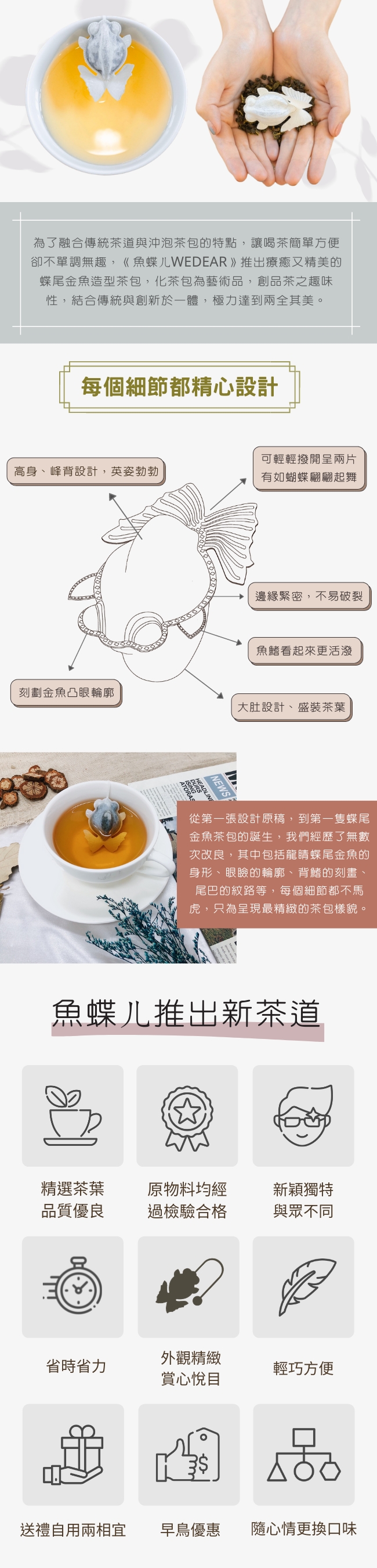 一杯熱(冷)水、一個茶包,就能讓最美的「蝶尾金魚茶包」在杯中自在悠游