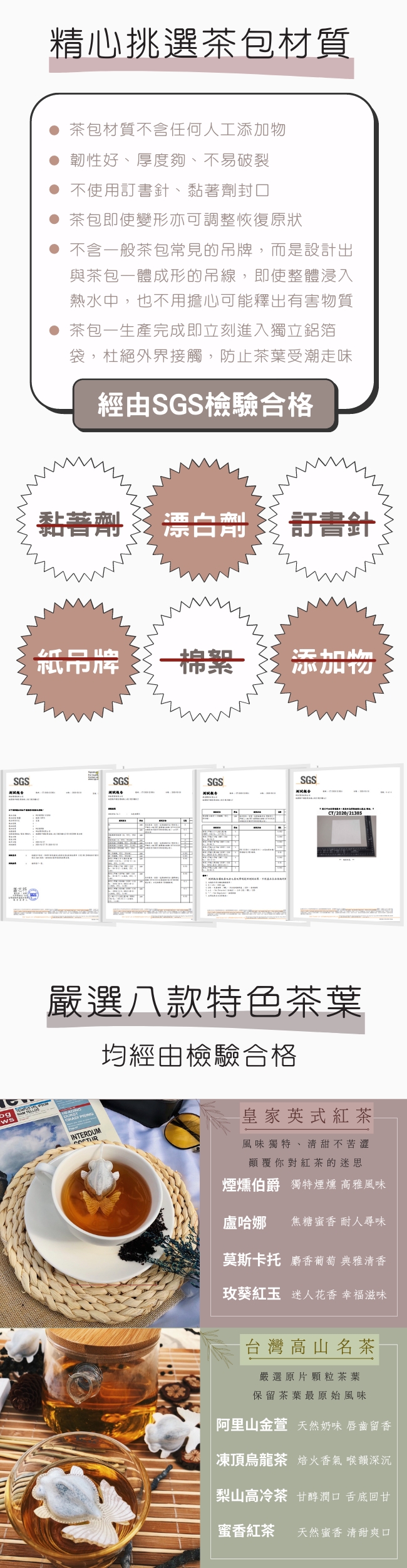 內外品質兼顧,不管是茶包材質還是茶葉,均經過檢驗合格,符合食品安全標準,讓您喝得快樂又安心。