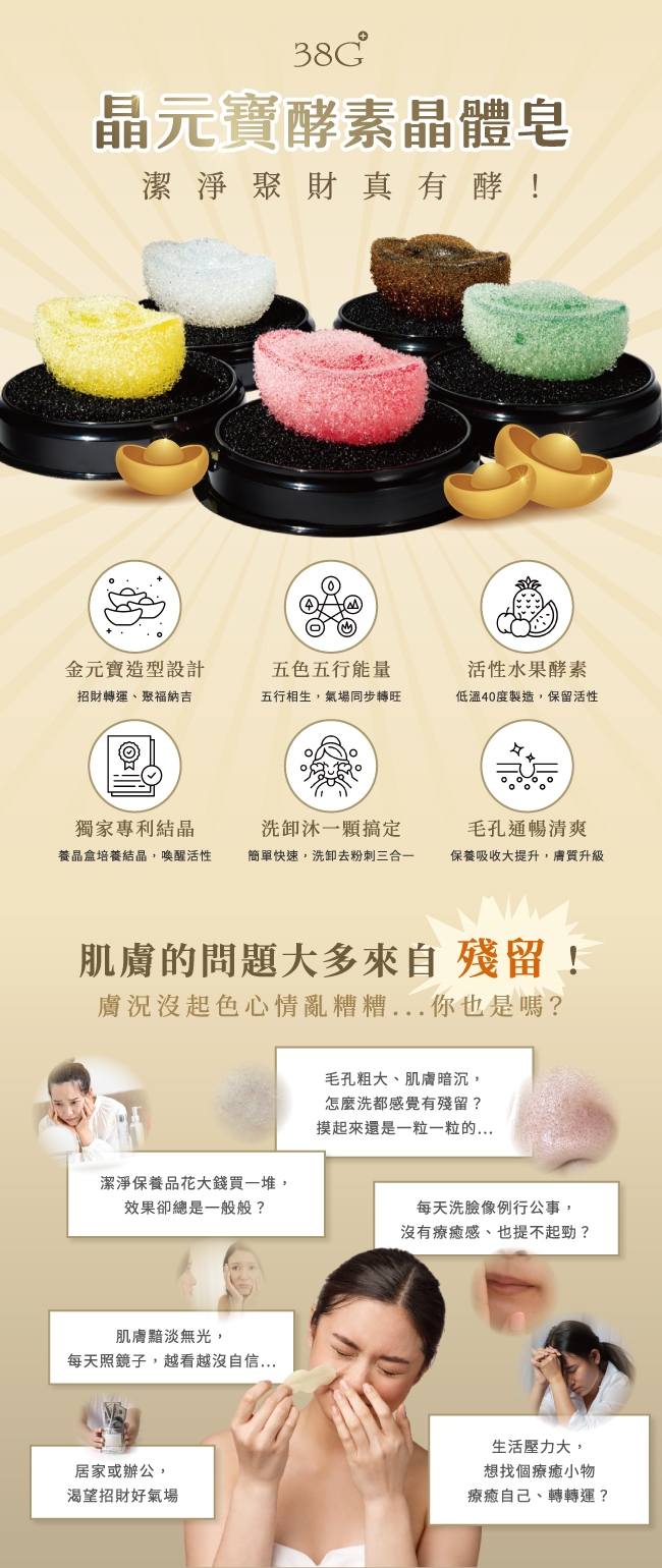 從「每天洗臉的第一步」開始,38G團隊推出象徵好運招財與轉變的【晶元寶酵素晶體皂】
