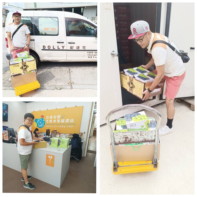 與網路購物生鮮店家合作宅配商品到買家手上,使用Dollycar寄件,桃園到雙北每件包裹平均2.5小時送達,到新竹北區僅用55分鐘,與黑貓、大榮相比配送效率更高(當天送達),導致退貨率與貨損幾乎為 0 !