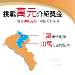 一年一約制首年20個月,代理人可代理多個區域且代理權可進行轉讓,依據包裹數量及人口分佈狀況,其區域代理之經營估值全歸代理商所有。