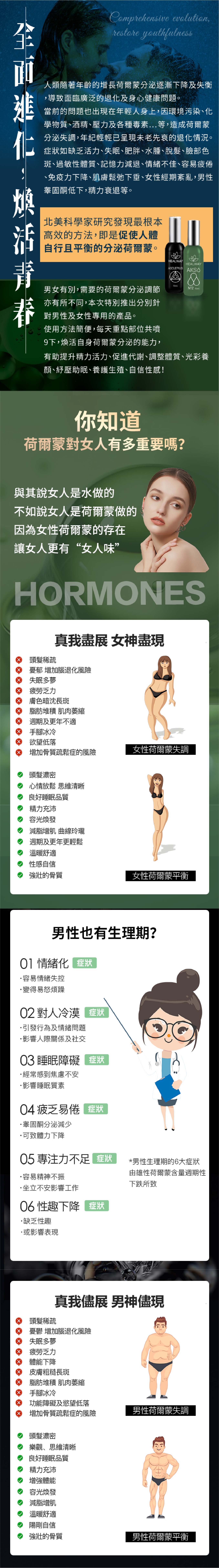 男女有別,需要的荷爾蒙分泌調節亦有所不同,本次特別推出分別針對男性及女性專用的產品。