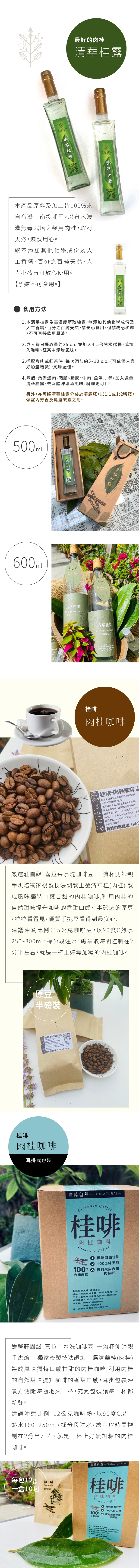 達標優惠$1800(上市價:$2400)內含【清華桂純露500ml_x2瓶+清華桂淨化洗髮露550ml_x2瓶+肉桂咖啡(耳掛式12gx10包x1盒)】