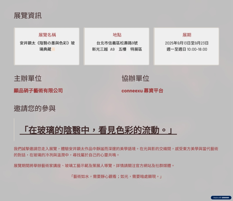 獨家藝術拍賣VIP資格 安井顯太藝術經銷 (購買VIP資格可活動第一天優先選購藏品權利,並同時獲得安井顯太藝術之經銷權資格,其金額為選購藝術品的定金)