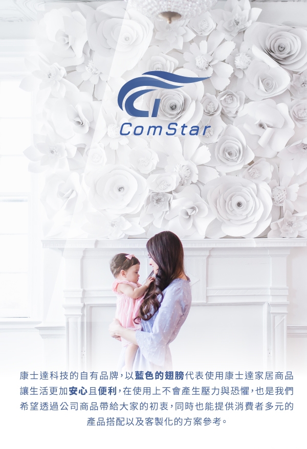 康士達安心居家 (ComStar-Life) 康士達科技的自有品牌,以藍色的翅膀代表使用康士達家居商品讓生活更加安心且便利,在使用上不會產生壓力與恐懼,也是我們對於公司商品希望帶給大家的初衷,同時也能提供消費者多元的產品搭配與以及最適方案的參考。
