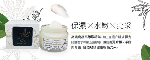 【主成分】 燕窩萃取精華、燈塔水母第五型膠原(歐盟六國專利)、醣基海藻糖、甲基葡糖醇聚醚、維生素原B5、維生素B3、植物複合物、洋甘菊萃取液、紫草萃取尿囊素、玻尿酸、有機蘆薈萃取、植萃精油(百里香、甜橙、葡萄柚、佛手柑、檸檬、依蘭)
