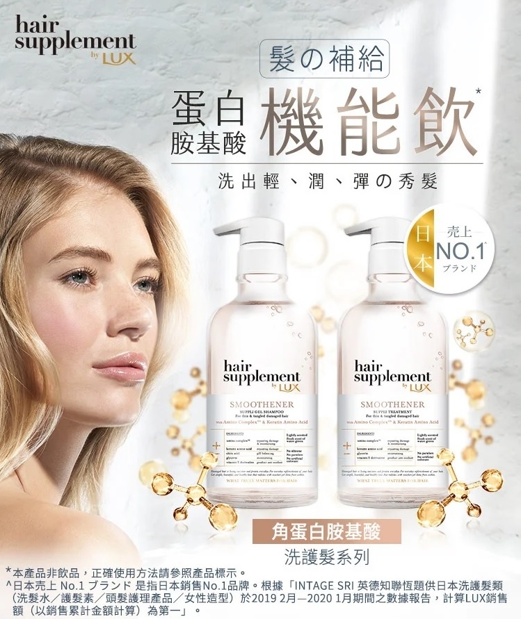 補水同時鎖水,深入髮芯修護 含黃金比例複合式胺基酸 強韌/染燙修補並柔順髮絲