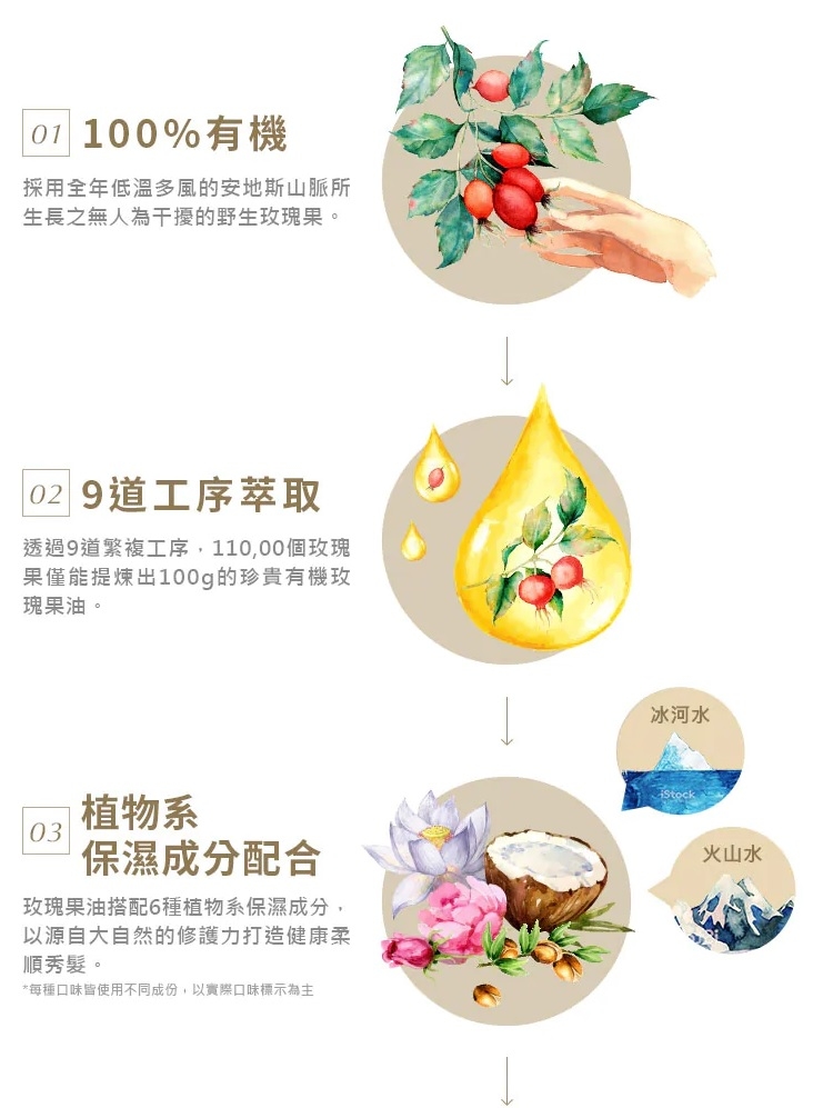 LUX麗仕-瑰植卉植萃水潤空氣感護髮乳 510g 3入 6種植物系保濕成分 1.有機玫瑰果油:含豐富的必須脂肪酸有助修護因日曬、風吹或吹整染燙而損傷的秀髮,並給予頭皮保濕,幫助維持頭皮健康 2.尤加利萃取:挑選自西班牙的尤加利葉 3.蘭花萃取:選取於歐洲生長的蘭花 4.葡萄籽油:挑選自義大利、西班牙、法國及東南歐地區之葡萄籽 5.綠茶萃取:選自於亞洲生長的灌木 6.水薄荷萃取:嚴選自東歐地區的水薄荷 來自海拔4600m的瑞士羅莎峰冰河水,經過30公里長的河道,經由河床層層過濾為純淨冰河水, 結合6種植物系保濕成分,給予秀髮保濕修護,打造柔順有光澤的秀髮 全系列皆不含Parabens防腐劑與合成著色劑添加 產地 : 日本