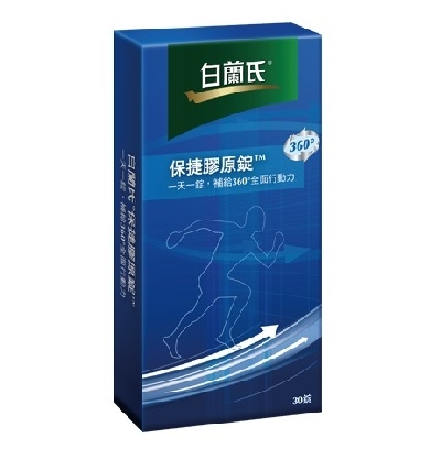 Brand's白蘭氏-保捷膠原錠 12公克(0.4公克x30錠)/盒 採用哈佛醫學最新有效成分UC-II®,敏捷效果加倍UP! 一天只要一小錠 補足身體靈活力 複方全方位照顧敏捷 通過458項檢測 品質保證才安心 建議用量:每日1錠,一日勿超過1錠,多食無益。 注意事項:體質特殊、懷孕及授乳婦女,請諮詢專業人士後使用,內附乾燥劑,請勿食用。 保存方法:請保存於25℃以下環境,並避免光線直接曝曬。本產品含天然成分,每錠外觀可能略有差異,但都具有相同效果,請安心食用。 成分:微結晶纖維素、水解第二型膠原蛋白(雞胸軟骨)、非變性第二型膠原蛋白UC-ll®(雞胸軟骨、氯化鉀)、維生素C(維生素C、玉米澱粉)、硬脂酸鎂、二氧化矽 食品添加物:氯化鉀、維生素C、硬脂酸鎂、二氧化矽 營養標示: 成份 每份維生素C20毫克 其他成分: 每份添加量 UC-II®(非變性第二型膠原蛋白)40毫克 水解第二型膠原蛋白50毫克 食品業者登錄字號:A-127930041-00000-4 產地:台灣