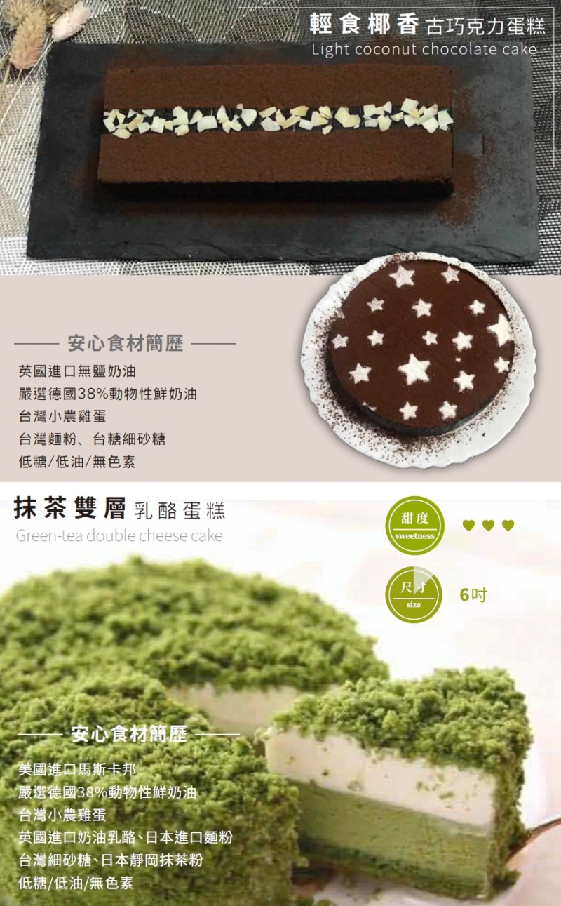 抹茶雙層乳酪蛋糕 #訂購注意事項 有宅配 請提前3天以上預定 急單可詢問 完成匯款訂單才成立 冷凍宅配以免蛋糕變形 #我們的聯絡方式 FB:直接粉專私訊我們 Email: iris.liu3112@gmail.com phone:0917-098-756 #安心食材簡歷 美國進口馬斯卡邦 嚴選德國38%動物性鮮奶油 台灣小農雞蛋 英國進口奶油乳酪 日本進口麵粉 台灣細砂糖 日本靜岡抹茶粉 低糖/低油/無色素